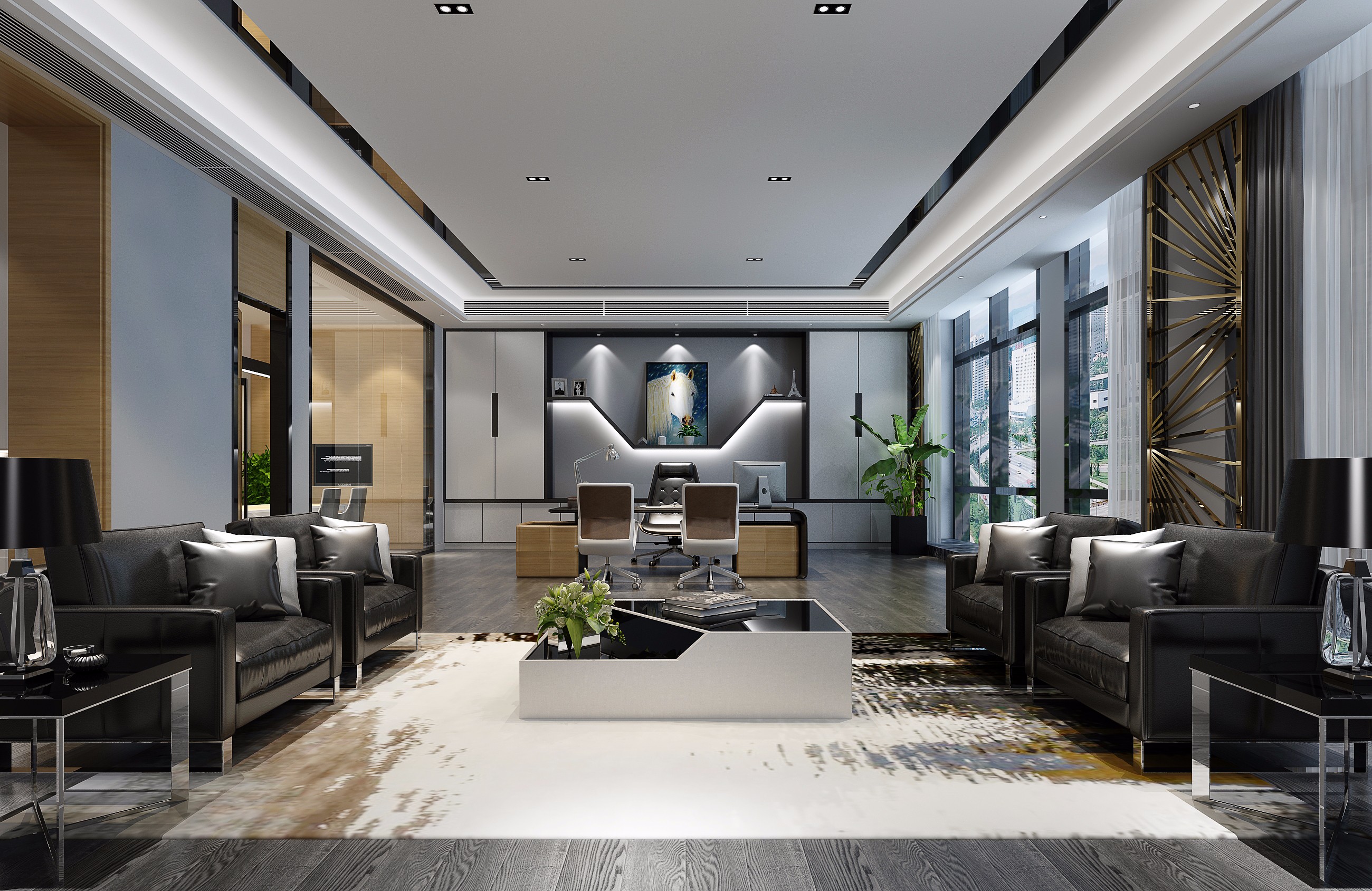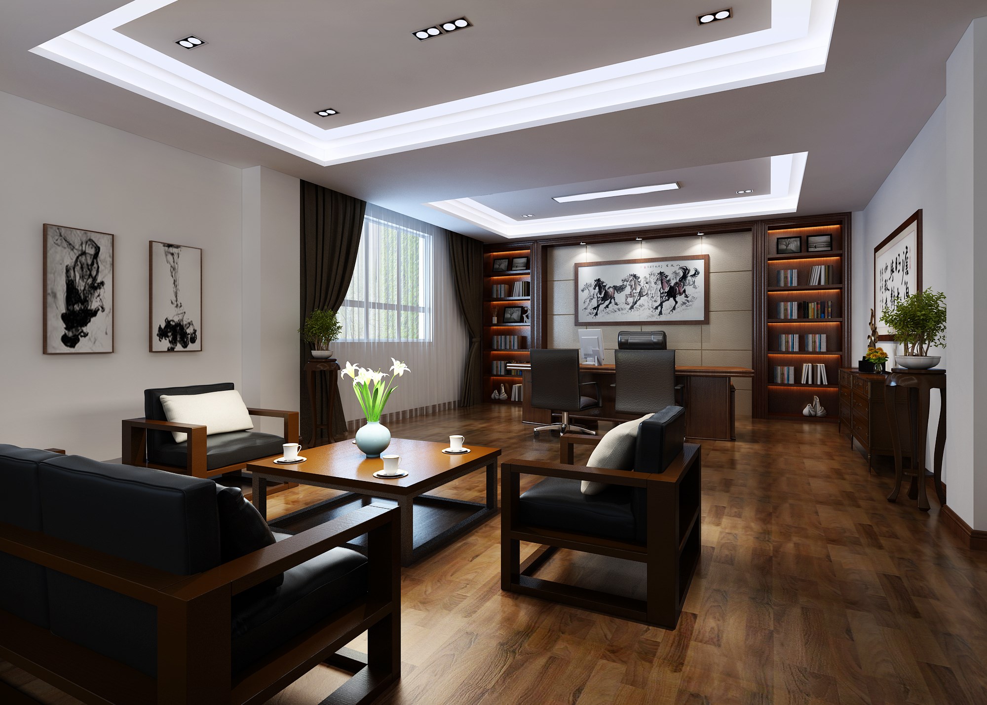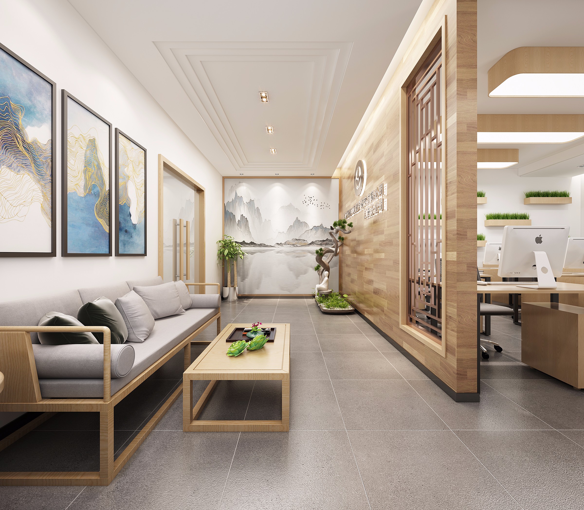 上海辦公裝修設計公司紙新中式風格辦公室設計方案,新中式風格辦公室設計是一種融合了傳統(tǒng)中式元素和現(xiàn)代風格的室內(nèi)設計風格。它以簡約、大氣的線條,精致的細節(jié)處理以及舒適的空間氛圍為特點,營造出一種典雅而富有內(nèi)涵的工作環(huán)境。首先,新中式風格辦公室的設計注重空間的流動性和層次感。設計師通過合理布局來創(chuàng)造一個寬敞明亮的空間,同時利用屏風、窗欞等傳統(tǒng)裝飾元素進行點綴,使整個空間顯得錯落有致。此外,通過運用木質(zhì)地